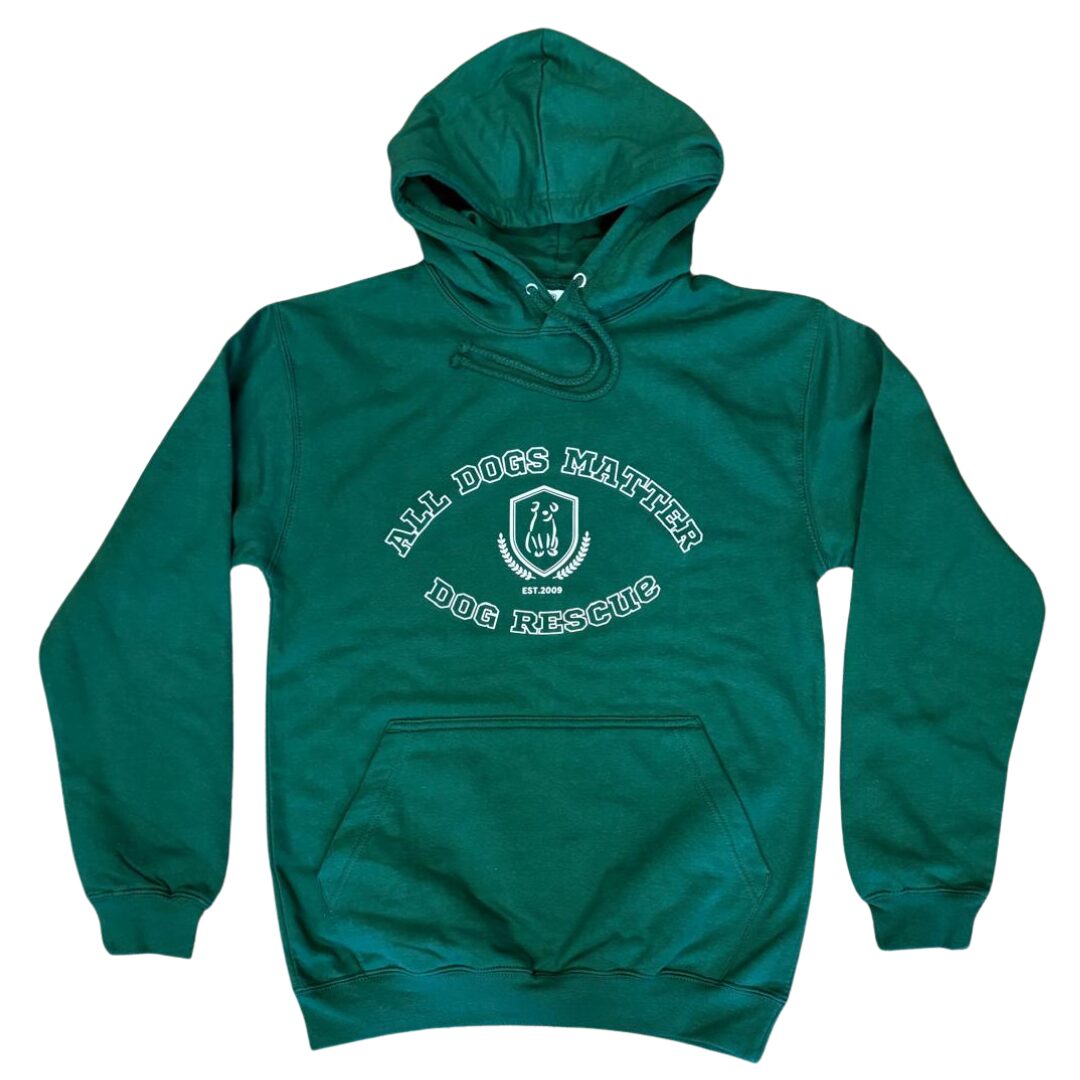 Keep cozy and stylish this autumn in our new Dog Rescue hoodie now available in bottle green!